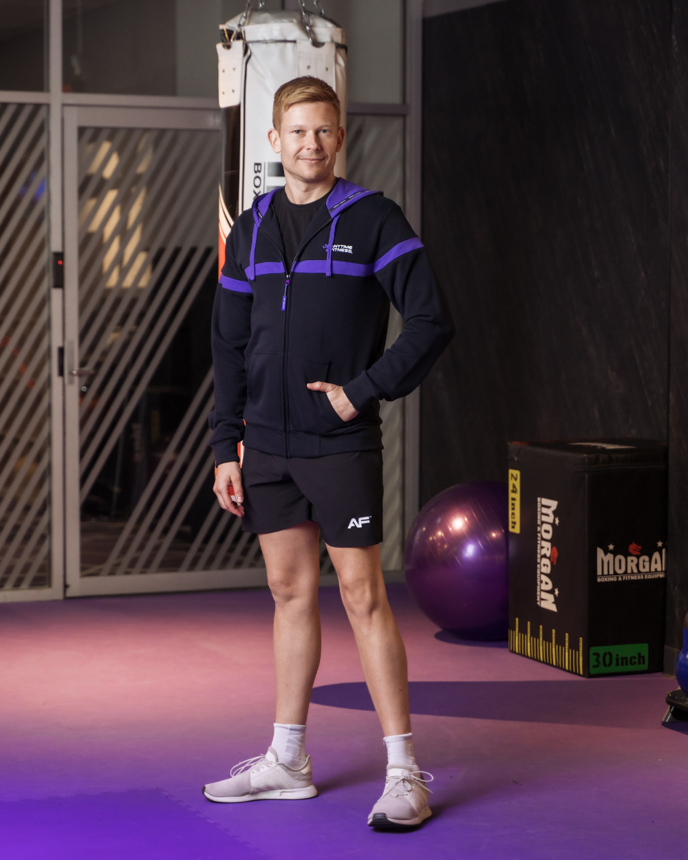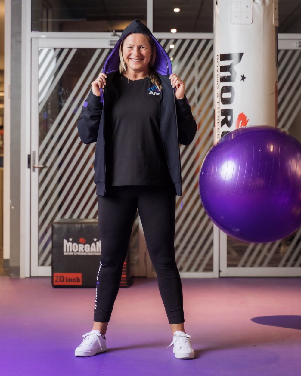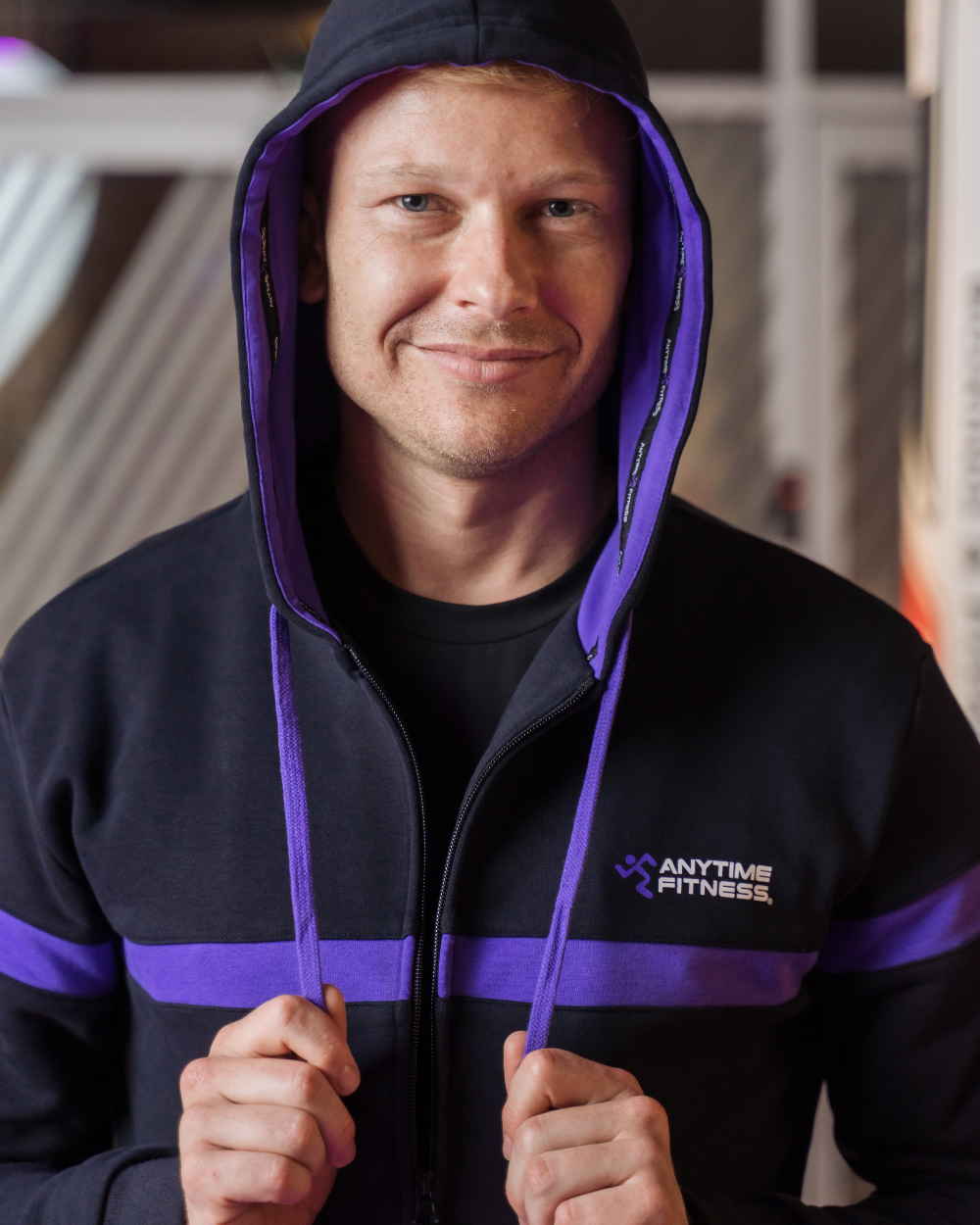 Elevated by the custom Anytime Fitness zipper toggle, contrast drawcords and purple lining inside the hood, this hoodie jacket was designed to help you bring your A-game. Created using a premium, mid-weight fabric with an anti-pill lining, this workout wardrobe classic offers the perfect level of comfort & cosy for the gym.